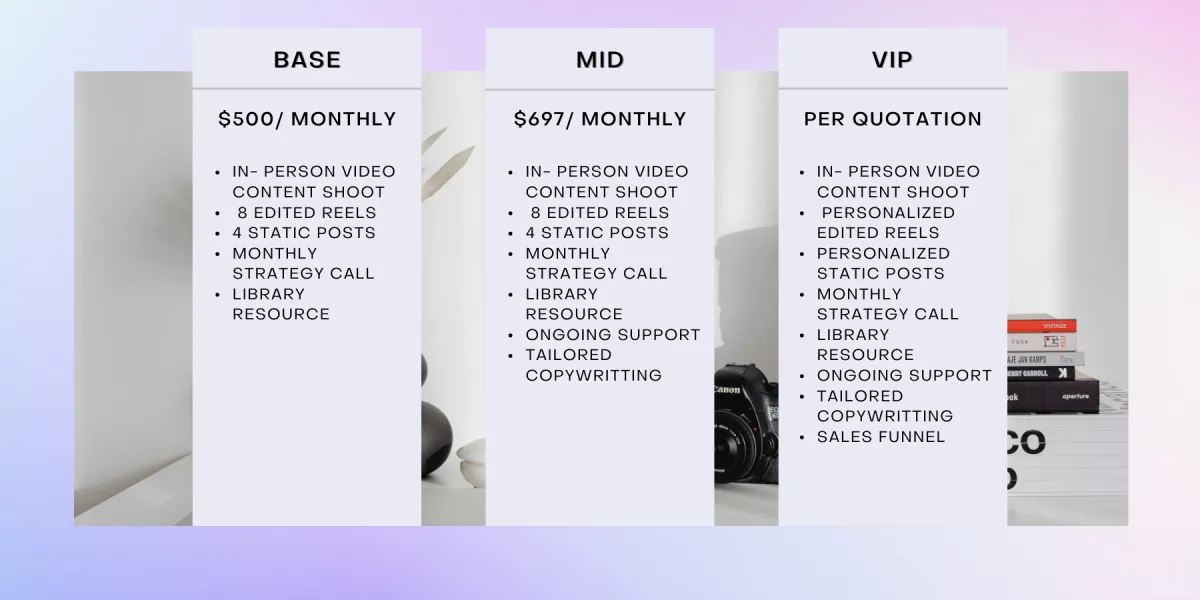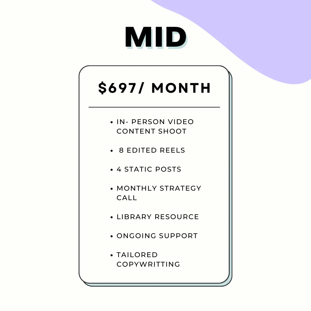 The beauty of the membership is that we handle the content creation for you. You'll only need a window of 3 hours to shoot enough content for one month, one hour for your monthly strategy call and minimal time to review and approve the content before we post it.